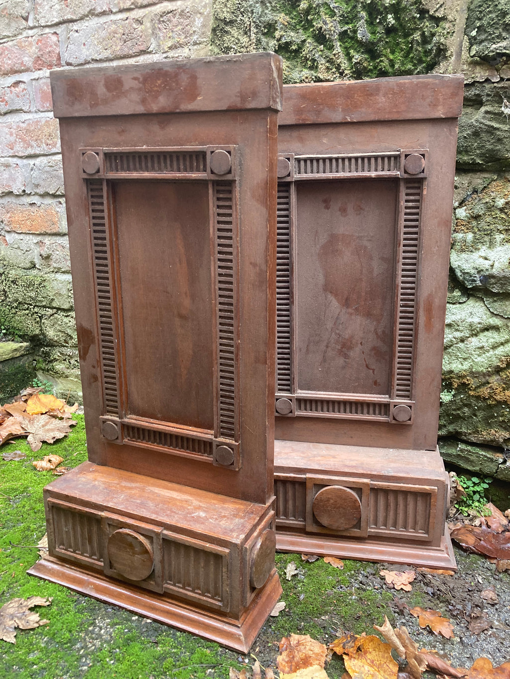 Pair of Salvaged Oak Furniture Panels Architectural … Off Fireplace or Pulpit perhaps ? Arts & Crafts Style